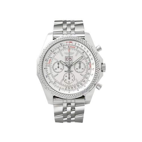 The Breitling for Bentley 6.75 is equipped with a variable tachometer (adjusted by rotating the Bidirectional bezel in either direction). When used in conjunction with the chronograph, the device, which resembles the traditional slide rule, enables extremely accurate measurement of average speed (regardless of elapsed time), distance covered, or the speed reached. Stainless steel case and bracelet, Deployant clasp with safety, Bidirectional rotating bezel, Screw down crown, Bentley Wheel insignia on the caseback, Silver dial, Luminous hands and hour markers, Big date below of the 12 o'clock, Small seconds subdial, Chronograph feature (Hours, Minutes, Seconds), Scratch resistant sapphire crystal, Swiss automatic movement (Breitling Caliber 44B), Water resistant to 100 meters/ 330 feet.